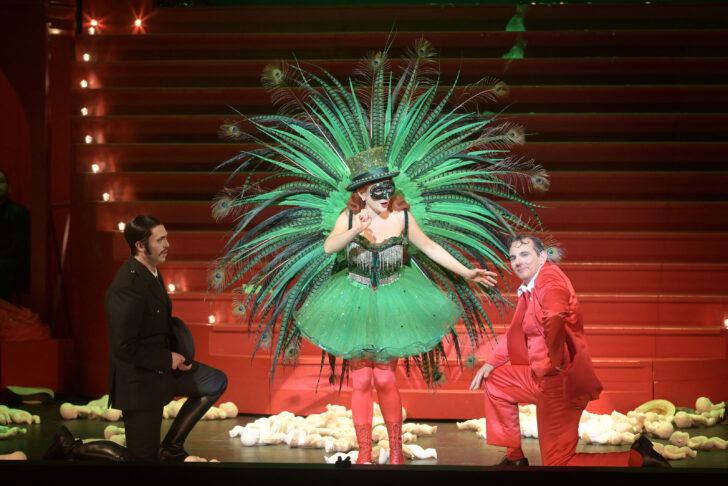 Avec de truculentes Mamelles de Tiresias, Olivier Py clôture sa Trilogie Francis Poulenc au Théâtre des Champs-Élysées. En première partie, Le Rossignol d'Igor Stravinsky occupe l'envers du décor…