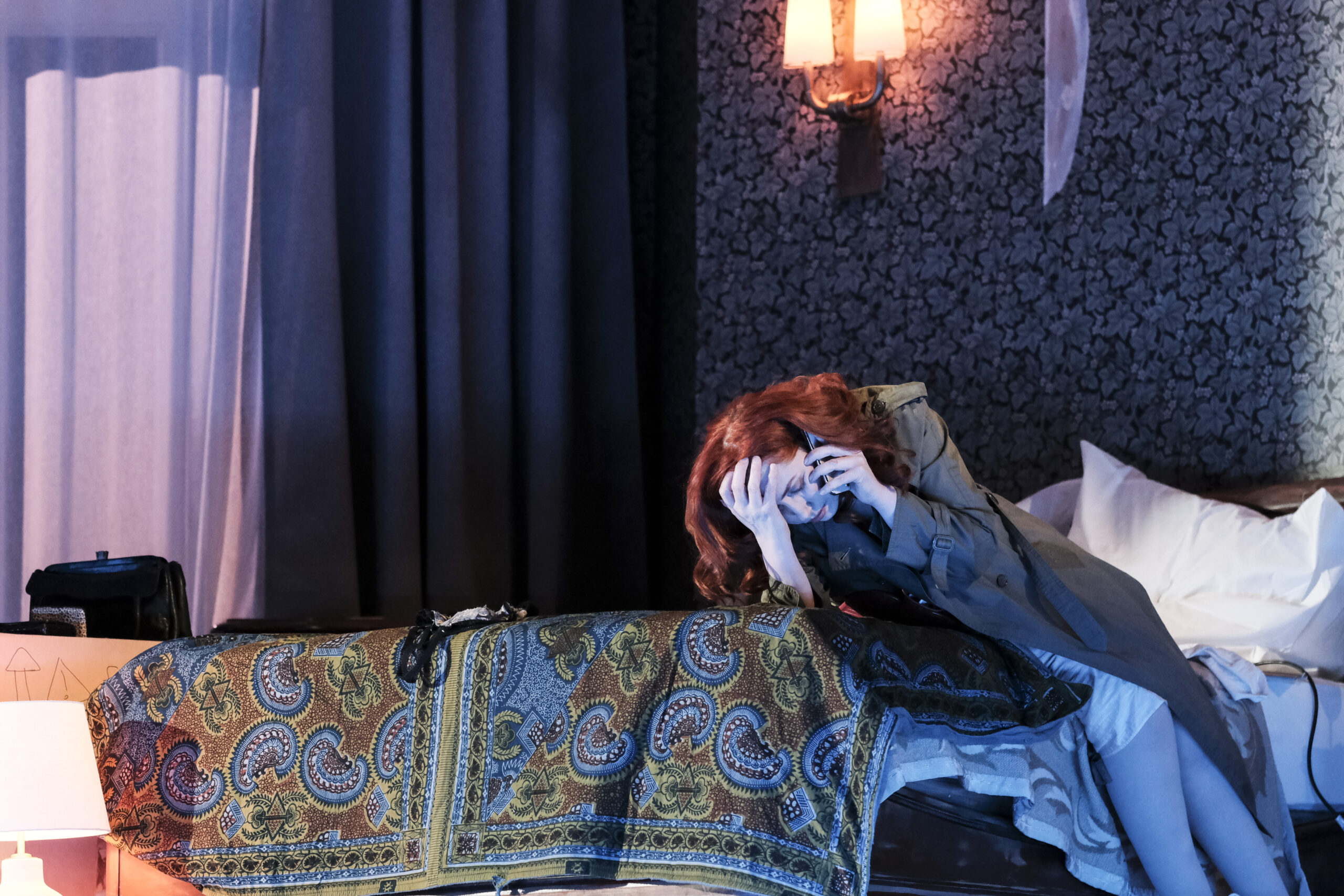 « Pendant un an, je n'ai rien fait d'autre qu'attendre un homme » : cette phrase qui ouvre le Passion simple d'Annie Ernaux, phrase en passe de devenir aussi mythique que certain « Longtemps je me suis couché de bonne heure » proustien, est le credo d'Elle. Et si on se faisait une toile pour commencer… Sur l'écran bleu de ses nuits blanches exposé en cinémascope au regard, à mi-hauteur de la scène dès l'entrée en salle, Elle, filmée par le réalisateur de films musicaux Grant Gee, erre dans un Strasbourg nocturne, cauchemardesque, presque méconnaissable. Lorsque la jeune femme pénètre dans son appartement, l'écran se lève pour offrir le contrechamp de l'entrée d'Elle en chair et en os dans son appartement : un lieu fatigué, dont le luxe d'antan se devine encore derrière le papier peint qui se décolle, la moisissure qui transpire du plafond. Durant quarante minutes, Elle prolonge l'errance, de façon intérieure cette fois, entre téléphone portable, ordinateur, et même vieux téléphone filaire, pour tenter de ramener là un homme dont elle n'a pas compris qu'il est définitivement ailleurs, en se mettant, sans que l'on s'en rende immédiatement compte, à faire le ménage de la pièce. Cette métaphore ménagère d'un cerveau désordonné la conduit in fine au grand saut dans le vide. La chute de l'opéra coïncide avec la chute de son héroïne.