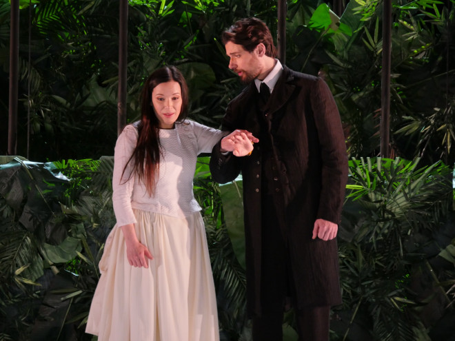 Las, cette idée suffit-elle à faire une mise en scène, à accompagner le spectateur dans son appréhension de l'œuvre ? Pas toujours car si la chorégraphie expressionniste, parfois animée de spasmes apporte une lecture « cachée » des personnages (la troupe de danseurs étant en outre assez exceptionnelle) elle rentre en contradiction avec la musique et surtout expose par la « distraction » qu'elle procure une lisibilité difficile du drame, de ses rebondissements et des questionnements que l'œuvre veut distiller. En sortant de la salle, la question reste en effet la suivante : qui a compris les enjeux du drame faustien et de la quête de l'éternelle jeunesse ? La scénographie est épurée avec des effets de lumière très étudiés. Mais si la force de la chorégraphie et la fluidité et l'élégance du dispositif tiennent la route, la direction d'acteurs reste trop minimaliste sans réelle intention didactique, laissant les chanteurs un peu livrés à eux-mêmes et faisant, dans une certaine mesure, tourner le concept en rond. Il aurait probablement fallu davantage investir sur la dramaturgie et les chanteurs.