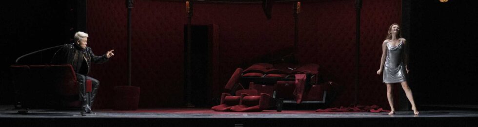 Strasbourg. Opéra national du Rhin. 24-III-2023. Claudio Monteverdi (1567-1643) : L’Incoronazione di Poppea, opéra en un prologue et trois actes sur un livret de Giovanni Francesco Busenello, d’après Les Annales de Tacite. Mise en scène : Evgeny Titov. Décors : Gideon Davey. Costumes : Emma Ryott. Lumières : Sebastian Alphons. Dramaturgie : Ulrich Lenz. Avec : Giulia Semenzato, Poppée ; Kangmin Justin Kim, Néron ; Katarina Bradić, Octavie ; Carlo Vistoli, Othon ; Nahuel di Pierro, Sénèque ; Emiliano Gonzalez Toro, Arnalta ; Lauranne Oliva, Drusilla ; Rachel Redmond, Fortune ; Julie Roset, Amour ; Marielou Jacquard, Vertu ; Rupert Charlesworth, Lucain ; Kacper Szeląźek, le Valet ; Patrick Kilbride, Premier Sbire ; Antonin Rondepierre, Deuxième Sbire ; Renaud Brès, Troisième Sbire. Ensemble Pygmalion, direction : Raphaël Pichon