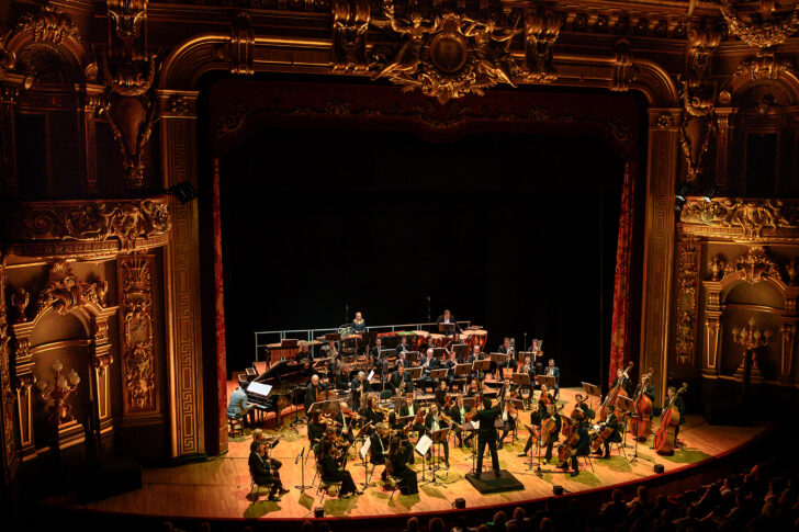 Mistery Galaxy, donnée en seconde partie de concert, est une composition toute récente de Riccardo Del Fra, créée à l'Opéra de Toulon en février 2022. Deux percussionnistes de l'Orchestre des Pays de Savoie se joignent à l'ensemble déjà cité dans cette pièce qui louvoie entre temps lisse (cette longue introduction du tutti ménageant l'attente et le suspens) et le temps pulsé qui ramène la batterie et le groove du jazz en même temps que l'espace de l'improvisation. Force est de constater que l'on passe de l'un à l'autre avec beaucoup de fluidité, le compositeur jouant aussi avec les ruptures (solo de piano dans un temps suspendu) et les contrastes de dynamiques (haut et bas régimes), assurant à chacun des jazzmen de superbes solos quand la partition exige des musiciens de l'orchestre de beaux déploiements sonores. Avec un ultime solo débuté a cappella, Del Fra rallie les univers, entre subtilités rythmiques du thème de jazz et exploration spatio-temporelle de la musique contemporaine.