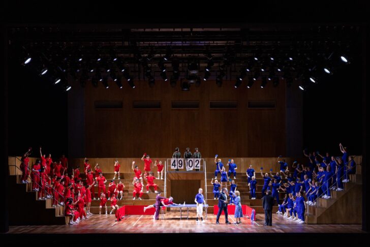 Liée à la compagnie La Fura dels Baus de 2000 à 2020, la metteuse en scène argentine Valentina Carrasco fait également son entrée à l'Opéra de Paris en tant qu'artiste indépendante. Pour traiter un sujet toujours brûlant d'actualité, s'agissant des relations diplomatiques entre les deux pays, elle choisit un parti pris qui s'éloigne de la conception réaliste d'un Peter Sellars, envisageant cette événement historique comme une sorte de mythologie, une façon de voir le monde sous un angle plus abstrait. Aussi s'empare-t-elle de « la diplomatie du ping-pong », une stratégie d'échanges amicaux entre les spécialistes du tennis de table qui avait incité les Chinois, en 1971, à inviter les pongistes américains, soit une petite année avant la venue officielle de Nixon en Chine. La table de ping-pong devient l'élément symbolique des échanges, clé de lecture physique autant que scénographique de tout l'opéra. Le geste du pongiste rejoint d'ailleurs l'univers musical d'un John Adams en vertu du balancement et du rythme répétitif de la balle.