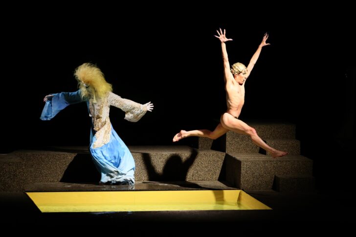 Vivre d'or et d'eau fraîche… Dans GOLD SHOWER au Théâtre national de Chaillot, François Chaignaud et Akaji Maro errent comme des spectres sur un plateau où poésie et burlesque s'incarnent dans ce « long, immense et raisonné dérèglement de tous les sens » cher à Rimbaud, l'étincelant et le doré en plus.