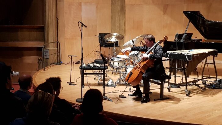 Ce concert intriguant a rassemblé le trio Dell-Lillinger-Westergaard, dont la musique peut être entendue comme le chaînon manquant entre l'héritage du jazz avant-garde et celui des langages contemporains de l'écrit, avec les deux solistes Benedict Klöckner (violoncelle) et Tamara Stefanovich (piano), invités par le trio à jouer des œuvres de Wolfgang Rihm et de György Ligeti.