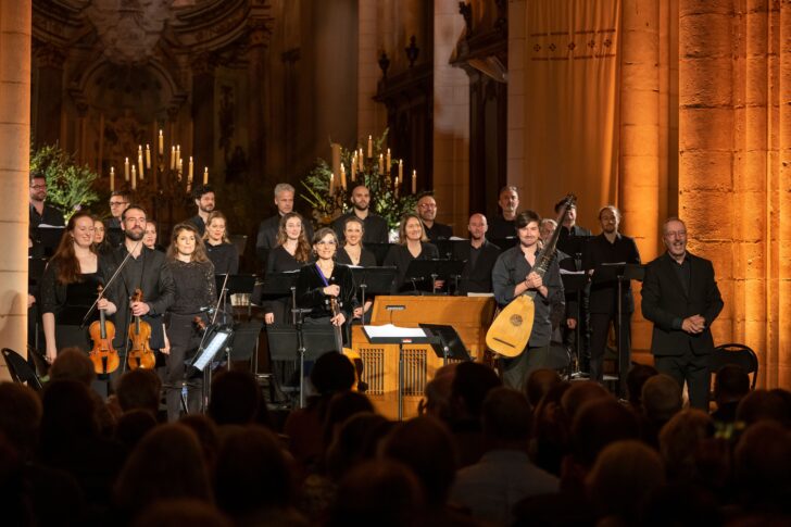 Chacune des éditions est consacrée à un compositeur. Cette année le directeur artistique du festival et co-directeur des Arts Florissants depuis 2019, a choisi Purcell et sa « sublime » musique. Purcell hélas disparu si jeune, en 1695, à 36 ans seulement, le regrette tant Paul Agnew pour lequel il s'agit peut-être du plus grand compositeur britannique de tous les temps. Pour l'ouverture du festival à la cathédrale de Luçon le vendredi soir, le premier concert, très rempli et donné dans une ambiance chaleureuse, convoque le chœur et l'ensemble instrumental des Arts Florissants sous la direction de Paul Agnew, pour un programme de musique sacrée faisant alterner anthems, polyphoniques ou entrecoupés de versets solistes, et sonates. Tout jeune chanteur dans le chœur de la Chapelle Royale, Purcell compose ensuite pour ce même chœur au service de Charles II, roi mélomane, arrivé au pouvoir un an avant sa naissance, après 10 ans de république « silencieuse », une époque charnière dans l'histoire à la fois politique et musicale britannique. L'hymne « Rejoice in the Lord alway » ouvre le concert. Après le prélude instrumental, les trois solistes Yann Rolland (alto), Sean Clayton (ténor) et Edward Grint (basse) sont rejoints avec ardeur par le chœur. Puis les voix s'élèvent pour la prière « I will sing unto the Lord as long as I live », ensuite recueillies et portant le texte avec émotion dans « Remember not Lord our offences » où se détache la voix de la soprano Juliette Perret. Les Sonates of three parts (V, VI, I ) alternant avec les pièces chorales apportent des moments d'une grande intensité, à la fois empreints de profondeur et de virtuosité, où se répondent les violons d'Augusta McKay Lodge et Patrick Oliva, l'alto de Myriam Bulloz et le théorbe de Thomas Dunford. La longue plainte de la polyphonie « Hear my Prayer o Lord » saisit, quand « My Heart is Inditing of a Good Matter » avec ensemble instrumental semble enjoué et plein d'allant. Le programme permet de montrer la grande diversité de combinaisons vocales dans la musique liturgique de Purcell, faisant ressortir les voix solistes, les associant par groupe, les faisant dialoguer avec le chœur, l'ensemble instrumental, suivis par le continuo de Florian Carré à l'orgue. La direction du chef, attentive aux chanteurs, est souple et engagée. Le poignant « Miserere mei » démontre à quel point avec une composition d'apparence simple, en deux lignes, le génie de Purcell s'exprime, souligne Paul Agnew, qui reprend l'œuvre en bis pour clore le concert, suivie d'un long silence de plusieurs secondes.