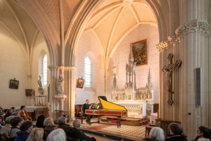 Le lendemain, le concert du matin se situe dans l'église de Saint-Juire-Champgillon (et non comme habituellement dans l'église de Thiré, actuellement en travaux) pour une carte blanche à Benoit Hartoin qui accompagne les Arts Florissants depuis plus de vingt ans. Le claveciniste propose une comparaison intéressante et expressive entre quatre familles européennes et des compositeurs morts prématurément, tout comme Purcell. La magnifique Suite en sol mineur du compositeur britannique diffuse une austérité et une profondeur remarquables avant la vivacité de Stradella, le raffinement ciselé et empreint de gravité de Couperin, le génie de Mozart et l'élan et la puissance de Forqueray en bis. À l'issue du concert, le public est convié à un café dans une petite maison du village joliment fleuri.