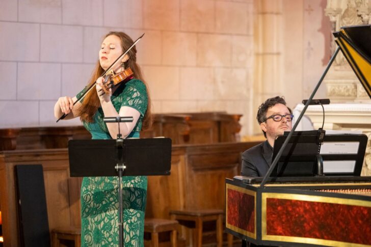 Le dimanche matin, le second « Concert et Café » présente des œuvres virtuoses pour violon de Purcell et ses contemporains, montrant à quel point les limites techniques pouvaient être alors repoussées. La violoniste Augusta McKay Lodge, premier violon des Arts Florissants, est accompagnée par le claveciniste Florian Carré, sobre et efficace. La musicienne fait mouche dans ce programme avec un plaisir évident à jouer cette musique qu'elle aime, comme elle le souligne dans une petite présentation non dénuée d'humour en début de concert. Les pièces virtuoses sont tour à tour enjouées ou mélancoliques, parfois sensuelles, interprétées avec vivacité et poésie.