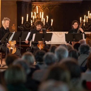 En fin de journée, l'église de Chantonnay abrite le concert de clôture du festival interprété par les membres de l'ensemble instrumental des Arts Florissants. S'y côtoient les Fantaisies pour violes composées par Purcell vers 21 ans et ses Sonates pour violon, trois ans plus tard, à l'arrivée en Angleterre du violon en provenance d'Italie. Les unes en quelque sorte tournées vers le passé avec un instrument déjà ancien, les autres vers l'avenir. Des différences et une comparaison voulue donc, dont le but est de « choquer » s'amuse Paul Agnew en début de concert. Ces œuvres montrent de nouveau, comme au fil du festival, la variété du répertoire de Purcell (hors lyrique) et sa faculté rapide d'adaptation. Des Fantaisies plus austères, pleines de gravité où se détachent par moments et dialoguent les violes de gambe : dessus de viole (Pau Marcos Vicens), ténor (Nicholas Mine) et alto (Josh Cheatham) tandis que Myriam Rignol, très expressive, est extrêmement sollicitée à la basse de viole tout le long du concert, accompagnant également les violonistes Augusta McKay Lodge (entendue la veille) et Tami Troman pour des Sonates tout en vivacité et souplesse, soutenues également par Florian Carré, impeccable, à l'orgue positif.