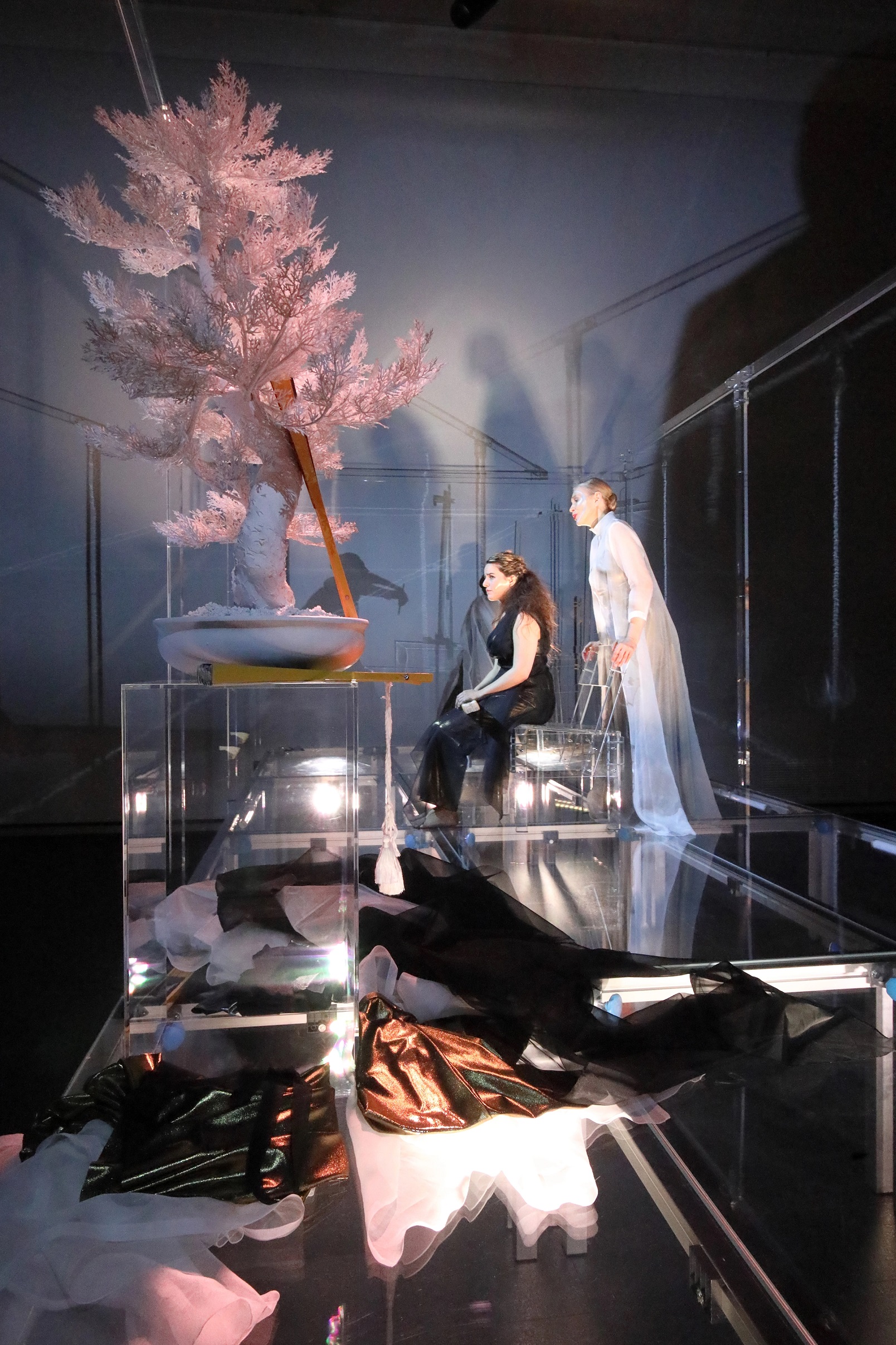 Charlotte Hellekant (Jitsuko) joue ici le premier rôle, non sans quelques duretés, mais avec un art consommé de l'ambiguïté et une richesse expressive qui portent l'émotion tout au long de cette courte soirée. Le Yoshio très humain de Konstantin Krimmel, qui danse aussi bien qu'il chante, ne peut rien contre la barrière qu'elle a mise en place autour de Hanako, qu'elle déclare folle pour mieux la garder avec elle – Cherkaoui et Sarah Aristidou ne croient pas à cette folie, ce que l'œuvre laisse à vrai dire clairement entendre.