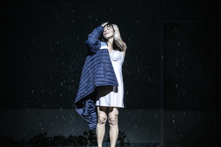 « Espérons, pour l'avenir, des fins différentes.» L'opéra ou la résurrection des femmes : tel est le vœu de . Des héroïnes qui renâclent à mourir sous la plume des librettistes et des compositeurs : on en dénombre déjà quelques-unes. En 2017, , exceptionnelle Katia salzbourgeoise, genevoise, aujourd'hui lyonnaise, ne voulait déjà pas expirer au terme de La Traviata bâloise de Daniel Krämer ; en 2008, Dmitri Tcherniakov sauvait in extremis les Carmélites de la guillotine ; sa Brünnhilde berlinoise de 2022 renâcle aussi bien à se jeter dans le brasier du Crépuscule des dieux qu'à se laisser circonscrire dans les flammes de La Walkyrie ; quant à sa Carmen aixoise, elle menait carrément le jeu… Dans le sillage de ces metteurs en scène masculins, , qui déclare ne pas aimer « montrer les femmes comme des victimes », repêche à son tour Katia de la noyade. La metteuse en scène polonaise préfère noyer métaphoriquement son héroïne sous la chute d'une pluie libératrice s'abattant du plafond de son appartement sur les épaules de celle qui s'était noyée dans la passion.