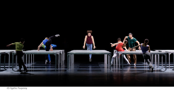 On s'y retrouve un peu mieux avec One Flat Thing, reproduced, troisième et dernière pièce à l'affiche de ce programme, entrée au répertoire du Ballet de l'Opéra de Lyon en 2004. Crée en 2000 pour sa Forsythe Company, l'œuvre nous montre quatorze danseurs aux prises avec vingt tables de belle taille, toutes bien alignées. Dès lors s'engage une vraie lutte entre les corps et la matière, où les danseurs grimpent sur la table, glissent dessus, s'engouffrent en dessous, y pointent une jambe vengeresse tel un sauteur de haies… Le corps à corps se fait à toute vitesse, les danseurs s'entraident ou se repoussent avec force, aidés par les rythmes obsédants de Thom Willems, le compositeur fétiche de Forsythe. Tout cela n'a pas d'histoire. Quoi que. Il est dit que Forsythe aurait été inspiré pour cette œuvre par la découverte du Plateau polaire du Pôle Sud par l'explorateur Robert Scott en 1903. Le lien ? Comme les explorateurs, les danseurs doivent être solidaires, et affronter des milieux hostiles. En l'occurrence, une table qui obstrue leur passage.