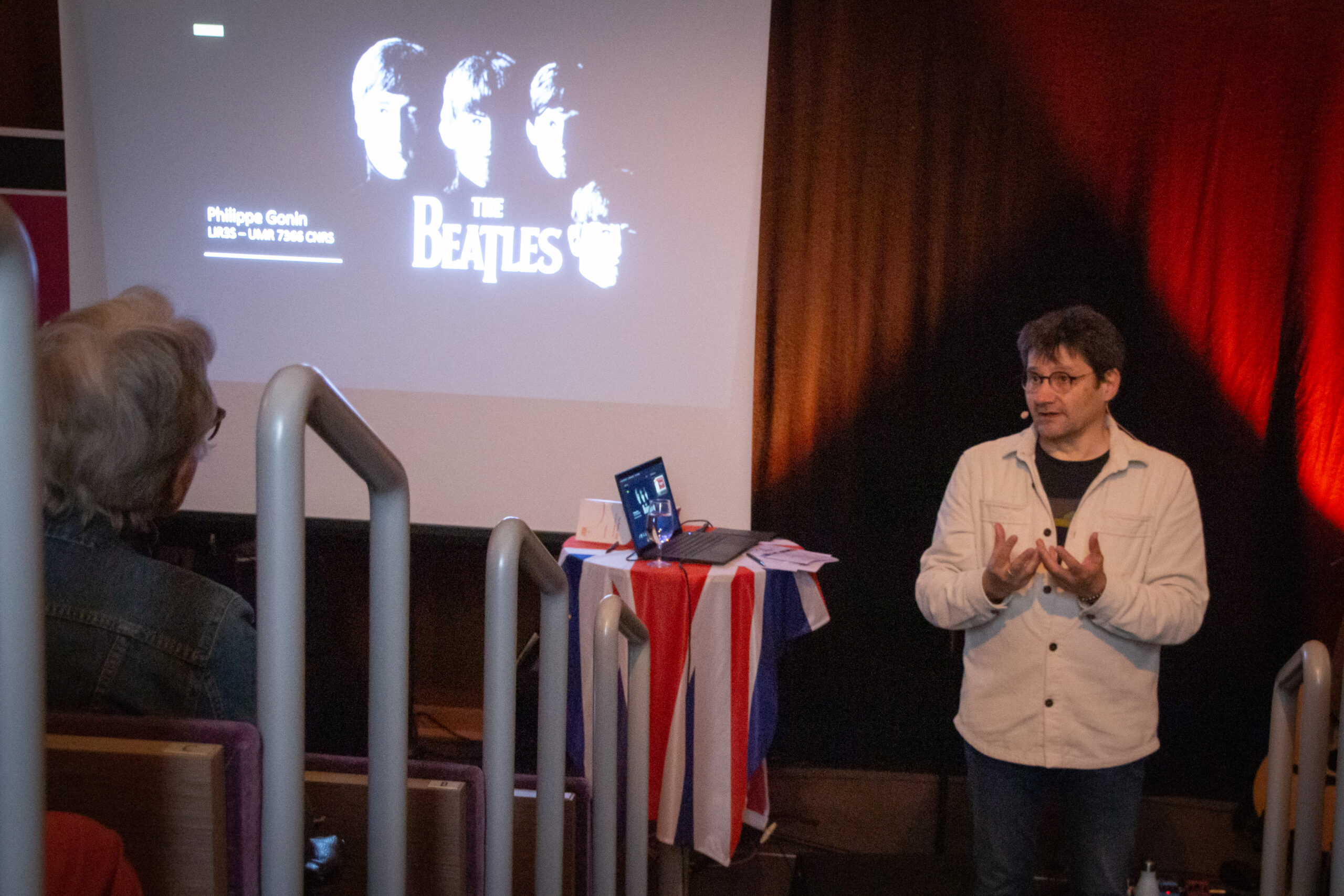 Tout commence un vendredi dans l'intimité de la Grange de la Cité de la Voix. La Beatlemania vézelienne est introduite par la conférence éclairante d'un beatlemaniaque éclairé. Philippe Gonin, homme aux multiples casquettes, est compositeur (A Floyd Chamber Concerto), musicologue, auteur (dont The Beatles 1969, De l'autre côté de la rue). Armé d'un talent de conteur très partageur, il narre la carrière d'un groupe qui, au bon endroit comme au bon moment, passa d'insoucieuse machine à danser des yéyés à étendard planétaire d'une époque qui vit la fin de la guerre au Vietnam et préparait la chute du communisme. Philippe Gonin évoque la manne expérimentale permise au groupe par la sophistication montante des studios, ose le déboulonnage de statues : Sgt Pepper's Lonely Hearts Club Band meilleur album du monde ? La réponse à la question est le chant du cygne du groupe, avant implosion : Abbey Road, dont Gonin détaille quasi-amoureusement le processus.