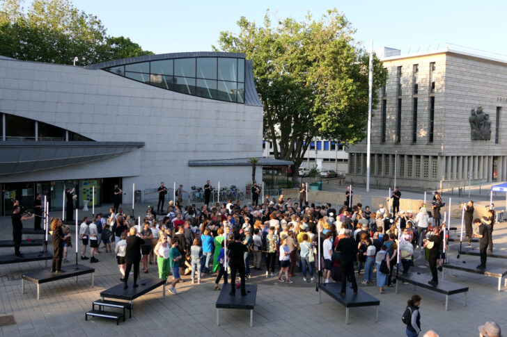 C'est encore dans le soleil du soir que commence à résonner l'œuvre de Terry Riley en ce mardi 6 juin à 20h, sur le parvis du Grand Théâtre de Lorient. Très vite, la pâte sonore se densifie et la richesse des jeux spatiaux se révèle. Très vite, les auditeurs apprennent à dompter leur perception, à jouer de leurs déplacements ou à fermer les yeux pour se laisser porter. Cette œuvre invite en effet le public à se faire librement créateur de sa propre écoute.