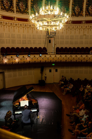 A 16h30, Fanny Azzuro nous offre son nouveau projet confrontant le cycle des vingt-quatre préludes de l'opus 28 chopinien avec – en guise de plantureuse mise en bouche, un choix de neuf extraits du juvénile recueil éponyme opus 11 d'Alexandre Scriabine. Les affinités de la jeune pianiste avec le répertoire russe ne sont plus à démontrer, après plusieurs réussites discographiques majeures dûment fêtées en ces colonnes (notamment une superbe intégrale des préludes de Rachmaninov). Le jeune Scriabine lui convient tout aussi bien : elle égraine ces trop courts extraits avec une poésie intense, une délicatesse touchante mais jamais mièvre et un incontestable sens de la couleur : l'interprète, très probe, ne sacrifie à la moindre œillade salonarde factice, et évite fort à propos l'écueil de l'épigonal. L'opus 28 de Chopin s'avèrera sous ces doigts, plus inégal : il est sans doute difficile de maintenir la concentration en cette salle surchauffée, perméable aux bruits extérieurs intempestifs. Quelques minimes scories, bien excusables pour une « première » publique dans un tel contexte, entacheront par exemple le flux continu des doubles (troisième prélude) ou triples croches (huitième) ou barreront la course folle du douzième. Mais nous retenons la sincérité de l'interprète, livrant un opus 28 conçu tel un « Art poétique », joué pour lui-même sans recherche interprétative superfétatoire et sans le moindre effet de manche déplacé. Voici donc une lyrique collection d'instantanés, de visions fugitives, où l'aménité du propos (préludes 1, 7, 13) le dispute à la morbidezza ambiante (n°2,n°14), le spleen lyrique ( n°17) à l'option tragique (n°20), l'allégresse énamourée (n° 19) ou le cantabile belcantiste (n°21) à la noirceur fantastique (n°24). En bis, la pianiste ajoute à ce panel de préludes le célèbre et immatériel opus 32 n°5 de Rachmaninov, d'un onirisme impalpable et sublimé, et pour prendre congé en douceur de l'auditoire, le Von fremden Ländern und Menschen augural des Kinderszenen de Robert Schumann, livré avec toute la distance nostalgique requise.