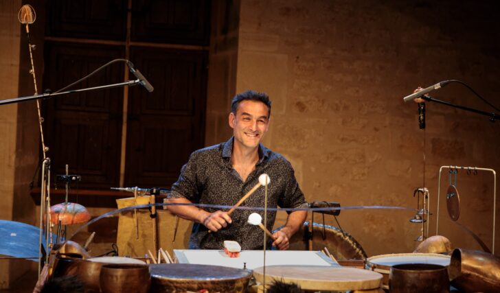 Le Dortoir des convers accueille Sonore Boréale, le solo percuté et parlé de Sylvain Lemêtre, percussionniste de l'Ensemble Cairn qui s'est récemment illustré dans la création de l'opéra de Philippe Leroux L'Annonce faite à Marie. Se définissant lui-même comme « autodidacte du conservatoire », Sylvain Lemêtre, ludion en totale liberté façon Hélios Azoulay, aujourd'hui seul devant une facétieuse table grouillante de percussions (les mailloches ressemblent à des sucettes, un chardon masqué sert de micro, des insectes à traction jouent à la culbute… ) n'engendre pas la mélancolie : à l'instar du passant qui complète en montagne les cairns, ces amas de pierres-repères, l'instrumentiste joueur (à tous les sens du terme), que l'on croit d'abord bien cloîtré dans sa bulle, sait embarquer son public par l'arme la plus redoutable qui soit : l'humour. De gloussements en réponses faciales, il entraîne l'auditeur à déposer à son tour, et à son insu, sa pierre sur le sentier qu'il a balisé à partir du recueil de compositions musicales imaginaires d'Olivier Mellano : La Funghimiracolette, dont la novlangue ravit le public de Noirlac. On passe de « bronisse » en « cachataouette », on parle de « claquettes électriques », de « choctemps », de « corpspositeur », on invente de nouvelles formes musicales comme la passacaille-batucada, on s'adonne à quelques transes. Ce concert de sons en tous sens est aussi un concert de silence : après la Tafel Music de Gérard Pesson, une interruption calculée du son est l'occasion pour Lemêtre d'engager un hilarant dialogue silencieux avec le public. Un dialogue où l'on aura compris chaque mot.