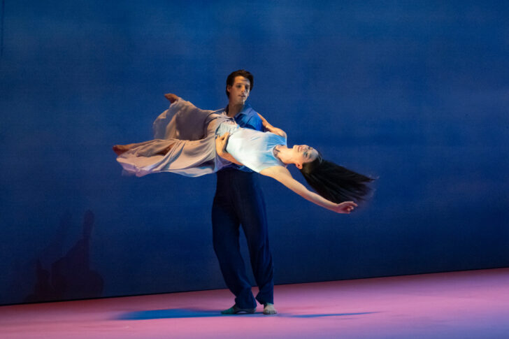 Opéra Bastille, Paris. 21-VI-23. Ballet de l’Opéra national de Paris : Signes. Sur une idée originale d’Olivier Debré. Chorégraphie : Carolyn Carlson. Musique : René Aubry. Décors et costumes : Olivier Debré. Lumières : Patrice Besombes. Avec Hannah O’Neill, Germain Louvet, les premières danseuses, les premiers danseurs et le corps de Ballet de l’Opéra national de Paris