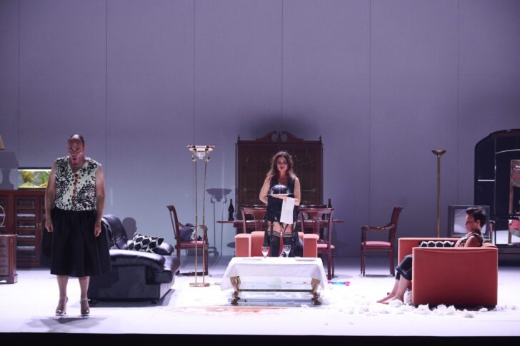 Bilbao. Teatro Arriaga Antzokia. 22 et 24-VI-2023. Hèctor Parra (né en 1976) : Orgia, opéra de chambre sur un livret de Calixto Bieito d’après l’œuvre éponyme de Pier Paolo Pasolini (Création mondiale). Mise en scène, scénographie et costumes : Calixto Bieito ; lumières : Michael Bauer ; réalisation des costumes : Oscar Armendaria. Avec : Aušrinė Stundytė, Donna ; Leigh Melrose, Uomo ; Jone Martinez, Ragazza ; Ensemble Intercontemporain, direction : Pierre Bleuse
