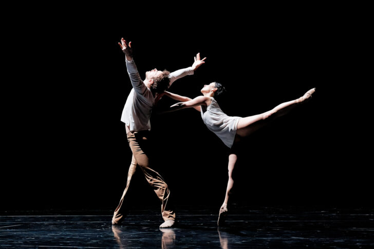 Qu'à cela ne tienne, la luminosité du geste est là, dans ces élans passionnés, ces portés en forme de glissades au sol de la jeune femme, ou en tournant comme dans l'univers du patinage artistique, le tout sur la musique langoureuse de… Max Richter. On perçoit, dans ce court pas de deux de sept minutes, somptueusement incarné par Ana Enriquez et Avery Reiners, solistes du Ballet de l'Opéra national du Rhin, l'influence discrète du style Forsythe, avec qui David Dawson a dansé. Mais ce dernier y a ajouté ce supplément d'âme extrêmement bienvenu. En sept minutes, Dawson dit tout, et cette fulgurance de la brièveté n'est vraiment pas pour déplaire.