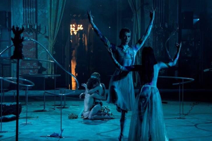Après Madrigals, présenté en avril à La Villette, Benjamin Abel Meirhaeghe revient à Paris, à la Grande Halle, pour trois soirs avec A Revue. Cette pièce créée en 2020 est un voyage musical spectaculaire dans le passé et le futur. Il fait fi de la temporalité, des genres ou du genre. Les airs du XVe siècle sont mixés avec de l'électro, du Schubert ou du Mozart. Les corps nus dans tous leurs états côtoient des humanoïdes androgynes. On balance sans cesse de l'univers de La Guerre du feu à celui de Valérian, on passe de la sidération a de véritables moments de grâce, notamment lors des performances des chanteurs (dont deux seulement sont chanteurs de formation !), ou lors d'une danse amoureuse dans laquelle les émotions des danseurs sont exprimées par une machine.