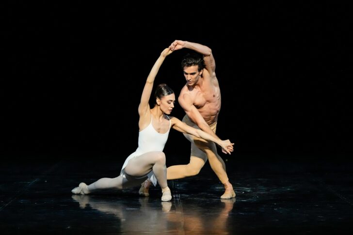 Au cœur de sa maturité, aux côtés de quelques pures pièces de gala, on retiendra surtout deux pièces, Opus 1 et Brouillards. La première est jouée intégralement, la seconde n'est présente que par extraits – on aurait volontiers renoncé à la moitié des autres œuvres du programme pour l'avoir intégralement. Opus 1 magnifie la Passacaille de Webern pour raconter le destin humain, de la naissance entourée des bonnes fées à la mort solitaire, avec au cœur un pas de deux intense entre relation amoureuse et guide spirituel : Rocio Aleman et Martí Fernández Paixà, entourés d'un corps de ballet de douze danseurs, sont à la hauteur de l'émotion musicale et chorégraphique. Les deux premiers extraits de Brouillards sont plus humoristiques, dans une pièce qui est plus changeante dans ses émotions d'entre deux (les Préludes de Debussy s'y prêtent bien), un trio masculin d'imparfaites mécaniques humaines possédées par leurs mouvements, et un duo féminin de girls au grand sourire, mais somme toute aussi possédées par leur apparence brillante que les hommes-machines qui précèdent (Mackenzie Brown et Daiana Ruiz, deux belles figures de la troupe actuelle); le trio des Pas dans la neige est plus représentatif de la tonalité introspective de la pièce, et tous les danseurs impliqués font honneur à l'intensité de la pièce. Dans un genre similaire, Initialen R.B.M.E., hommage par Cranko à ses exceptionnelles étoiles, est représenté ici par son troisième mouvement, avec un Friedemann Vogel à la hauteur du génie de ses prédécesseurs, en compagnie d'Elisa Badenes, sans doute la meilleure étoile féminine de la troupe aujourd'hui.