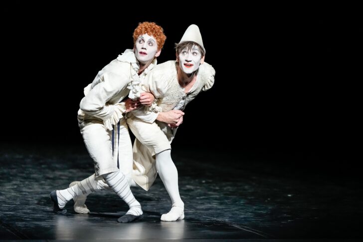 La soirée prend cependant en compte la totalité de l'œuvre créatrice de Cranko. L'extrait de Pineapple Poll, créé à Londres en 1951, est la pièce la plus ancienne du programme, et malgré l'entrain des jeunes danseurs qui la présente ce soir on n'y voit rien de ce qui fera le génie de Cranko dans les deux décennies suivantes : même son humour paraît encore balourd par comparaison avec ses pièces ultérieures. L'extrait de The Lady and the Fool (1954) qui suit est beaucoup plus intéressant et prometteur (plus que le ballet dans son ensemble à vrai dire) : la mélancolie des deux clowns blancs est d'autant plus drôle qu'elle est émouvante, et d'autant plus émouvante qu'elle est drôle. Friedemann Vogel, le danseur noble par excellence, montre que ses talents ne se limitent pas au grand style. Aux côtés de Matteo Miccini, il est ici d'une légèreté, d'une jeunesse, d'une expressivité qui forcent l'admiration. Un autre beau moment de légèreté, unissant élèves de l'école et stagiaires de la troupe, est Salade, sur la musique du Carnaval d'Aix de Milhaud, où trois dames évoluent autour d'un soliste masculin, comme une parodie très efficace de l'Apollon Musagète de Balanchine.