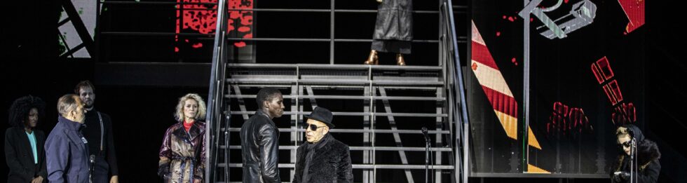 Festival d’Aix-en-Provence. Théâtre de l’Archevêché. 7-VII-2023. Kurt Weill (1900-1950) : L’Opéra de Quat’sous sur un texte de Bertolt Brecht (1898-1956) avec la collaboration d’Elisabeth Hauptmann d’après The Beggar’opera de John Gay (1728). Mise en scène : Thomas Ostermeier. Scénographie : Magdalena Willi. Costumes : Florence von Grekan. Chorégraphie : Johanna Lemke. Vidéo : Sébastien Dupouey. Dramaturgie : Christian Longchamp. Avec la Troupe de la Comédie-Française. Orchestre Le Balcon, direction : Maxime Pascal