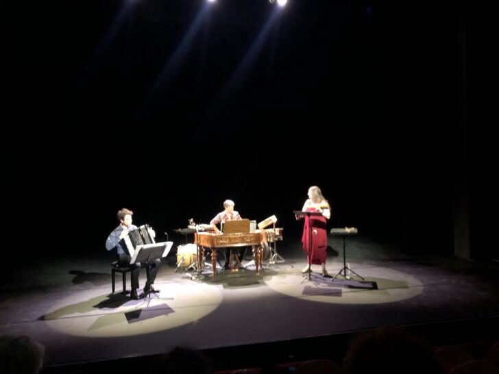 Trois interprètes d'exception et quatre œuvres sont au programme du concert d'ouverture entièrement dédié à la musique de Georges Aperghis. La musique mais aussi le théâtre et l'humour animent cette soirée survoltée donnée sur le plateau du Théâtre des Arts de Cluny. L'accordéoniste Vincent Lhermet est seul en scène dans Merry go round (manège), une pièce récente (2019) du compositeur qui a été l'un des premiers à écrire pour l'accordéon. Jouant sur les allures cinétiques du mouvement, Aperghis fait dialoguer les registres de l'instrument, entre lissage des sonorités et matière hérissée qui s'entendent sous les doigts experts de Vincent Lhermet, laissant l'imaginaire de chacun voyager à sa guise. À des fins expressives, des petits mouvements de tête de l'interprète accompagnent cette fantaisie sonore aussi sensuelle que poétique.