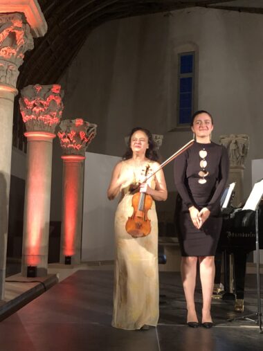 La musique de Schubert est chère à Bernard Cavanna qui a lui-même transcrit des lieder du Viennois pour violon, violoncelle, accordéon, et piano. Les deux interprètes terminent le concert avec la Fantaisie en do majeur pour violon et piano, opus posthume 159 que le compositeur écrit un an avant sa mort, livrant la quintessence de son art. Le thème qu'expose le violon sur la nappe sonore du piano en trémolo est sublime, que Schubert reprendra juste avant le final. Les variations centrales empruntent le thème du Lied Sei mir gegrüsst, déployant aux deux instruments qui échangent leur rôle une invention mélodique et une conduite harmonique des plus raffinées. Les deux musiciennes sont en phase, portant cette écriture de la maturité vers des sommets de virtuosité et d'expression lyrique. Ninon Hannecart-Ségal sait trouver sur son Bösendorfer, dans le registre aigu tout particulièrement, l'intimité du piano Schubertien tandis que Noëmi Schindler fait rayonner son instrument dans tous les registres et le fait chanter de manière très émouvante dans la variation lente.