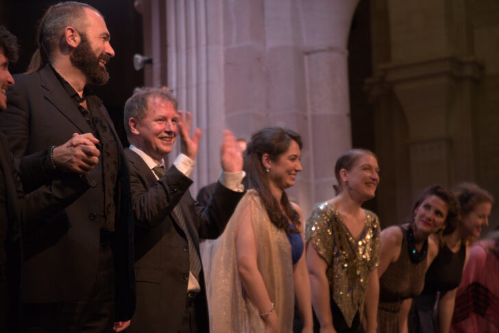 Le chef de chant qu'il fut se régale de la troupe de chanteurs réunie pour la fin de cette résidence montéverdienne. Le trio d'allégories donne le ton (Claire Lefilliâtre en Fortune, Ana Escudero en Vertu, Jennifer Courcier en Amour). On connaît depuis Aix 2022 l'Othon de rêve qu'est l'actuel enfant chéri de Beaune, Paul-Antoine Benos-Djian : le déchirant Poppea nel core conclusif du I est confié à une longueur de souffle qui n'est pas la moindre des qualités du jeune chanteur français. Hormis le duo infernal Néron/Poppée, tous les chanteurs sont conviés, à l'instar de Geofrey Buffière (Mercurio, Littore…) à plusieurs rôles. Tonitruants, Mathias Vidal et Marco Angioloni s'emparent des soldats. Plus loin Vidal sera une Arnalta haute en couleurs, et fort troublante quand l'ineffable Adagiati, Poppea conduira le ténor aux confins de son aigu. Sénèque permet à Luigi Di Donato de séduire avec la beauté d'un registre grave qui semble sans limites, mais le retrouve aux prises de sons un peu ouverts et d'une tension perceptible vers le haut de la tessiture. L'Addio final de l'Ottavia d'Eva Zaïcik, longuement différé avant de s'exprimer comme dans un dernier souffle, parachève la noblesse tranquille d'une interprétation au plus haut niveau. D'une grâce absolue, la Drusilla de Camille Poul affranchit le personnage de son habituel statut d'oie inconséquente. Ténor de caractère au timbre gracieux, à la vocalisation précise, Juan Sancho éblouit en Lucano, amuse en Nutrice. Vêtue d'une longue robe bleue, Francesca Aspromonte incarne une Poppée plutôt sympathique : on est loin de la « manipulatrice », de la « libidineuse » contre laquelle Blanchard nous avait mis en garde en préambule. Le monstre c'est Isabelle Druet, qui en Néron, n'apparaît nullement intimidée par une prise de rôle dont le festival aura fait mystère quasiment jusqu'au bout. La Cassandre et la Didon berliozienne du moment ne flotte à aucun moment dans les manches du tyran dont elle brosse à traits très calculés l'évolution psychologique. La chanteuse respire la musique, même celle de ses collègues. Avec quelques invités de luxe : Christina Deutekom sur les vocalises du premier duo ; Franco Fagioli au terme de l'affrontement avec Sénèque. Le duo Néron/Lucano est vraiment enivrant, les Ahi de Druet sur les Bocca de Sancho n'étant qu'un exemple de la force de persuasion du pari fou de Fuget. La comédienne est telle, qu'après avoir fait défiler la petite frappe ivre de sexe des premières scènes (cheveux plaqués à la garçonne sur costume noir, mains en révolver au bord des poches, bref Al Capone), puis le décideur de vie et de mort, elle parvient à nous faire oublier cette lie de l'humanité, en procédant au grand chavirement de l'apesanteur sublimée du Pur ti miro pour lequel Isabelle Druet rappelle (ah, les consonnes de pur ti stringo !) qu'au bout du compte : Io la Musica son…