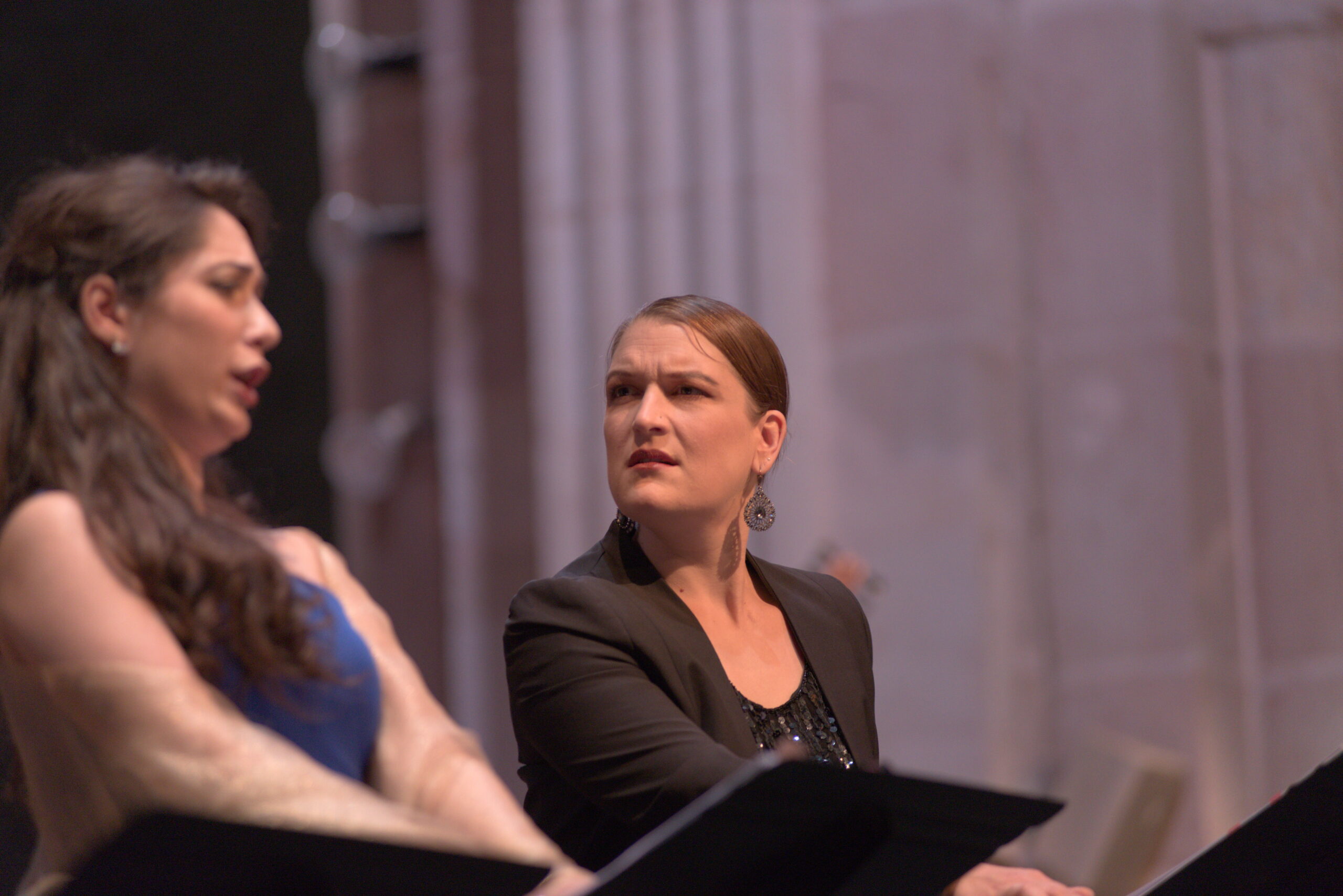 Même de dos, dirigeant du clavecin, mû par la musique qui le fait tressauter ou se dresser à la verticale, Stéphane Fuget, qui semble aussi beaucoup s'amuser, semble ne jamais s'accorder de répit. A l'opposé, le calme olympien des Épopées impressionne : un jeu sans histrionisme (on ne voit même pas le second clavecin), qui envoie, dans la nef de la Basilique Notre-Dame, un son ample et profond, capable de tenir la dragée haute à l'instrumentarium kaléidoscopique et a priori plus accrocheur d'Harnoncourt. Fuget ose aussi le silence : on n'oubliera pas celui qui suit l'affalement soudain du chef sur son propre clavier après en avoir fait surgir une dissonance en phase avec les propos morbides d'Ottavia.