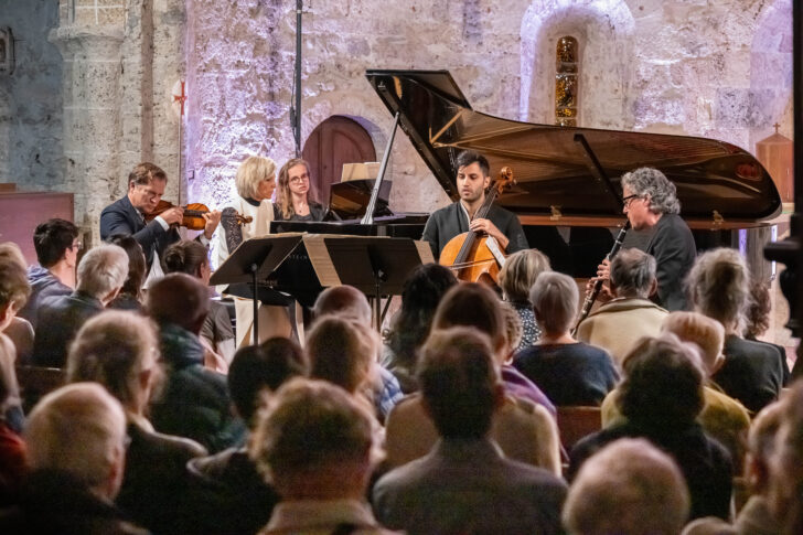 Dans l'église de La Grave sont réunis pour interpréter le Quatuor pour la fin du temps Renaud Capuçon, dont c'est la première venue au festival, le violoncelliste Kian Soltani, le clarinettiste Patrick Messina et la pianiste Hélène Mercier, quatre personnalités qui fédèrent leur talent dans cette œuvre mythique que le festival programme pratiquement chaque année. Car l'œuvre atypique et chargée d'histoire est chaque fois une nouvelle et passionnante expérience d'écoute pour le public : « Je suis parti d'une figure aimée, celle de l'Ange qui annonce la fin du temps (extrait de l'Apocalypse), et j'ai écrit un Quatuor pour les instruments (et instrumentistes) que j'avais sous la main », explique Messiaen dans la présentation de l'œuvre. Avec ses quatre musiques superposées, Liturgie de cristal est d'une absolue modernité qui réclame un équilibrage subtil et fragile que nos quatre musiciens peinent à instaurer ; on n'entend guère le violoncelle quand le piano semble toujours dévier du sillon dans lequel il doit se maintenir. La tendance à surjouer dans le deuxième mouvement, Vocalise pour l'Ange qui annonce la fin du temps, ne règle pas tous les problèmes : « cascades douces d'accord bleu et mauve, or et vert, violet-rouge, bleu-orange » suggère Messiaen, s'agissant de la partie de piano. Abîme des Oiseaux, très attendu, est un premier moment de grâce que nous fait vivre la clarinette de Patrick Messina, balançant entre temps long des lassitudes et temps vif des oiseaux. La sonorité boisée est toujours contrôlée et la ligne mélodique superbement conduite. Saisissante également est la gestion du souffle de l'interprète pour faire advenir le son, du triple pianissimo au quadruple fortissimo lors de ces longues tenues qui maintiennent l'écoute suspendue au devenir du son. La sonorité est rafraichissante, dominée là encore par la clarinette très en verve, dans l'Intermède dont les interprètes ne font qu'une bouchée.
