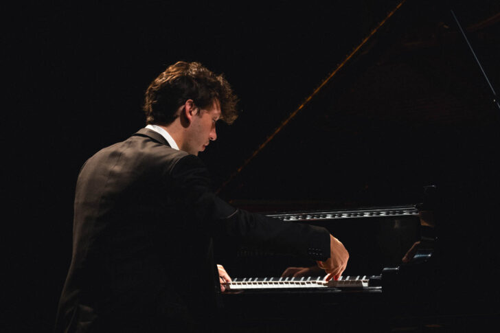 Pour commencer cette journée, le jeune Français Rodolphe Menguy propose un intéressant parcours autour de plusieurs figures de Liszt, puisqu'il mêle le religieux transcripteur de Bach au natif hongrois attiré par la forme populaire rhapsodique. D'un toucher coloré qui rappelle un style français, avec l'avantage de ne pas fuir la nuance au profit de la simple agilité, le pianiste débute, sur un Steinway & Sons dénaturé par le grave, un Prélude et fugue en la mineur BWV 543, transcrit pour piano par le compositeur du jour. Encore trop mesuré, sans sembler prendre la pleine mesure de l'écriture de Bach dans le Prélude, le jeu de Menguy s'adapte mieux à la fugue pour convaincre plus encore dans la petite Toccata S. 197a, cette fois de Liszt seul, avant de s'attaquer à trois Rapsodies Hongroises, jouées également dans son récent enregistrement.