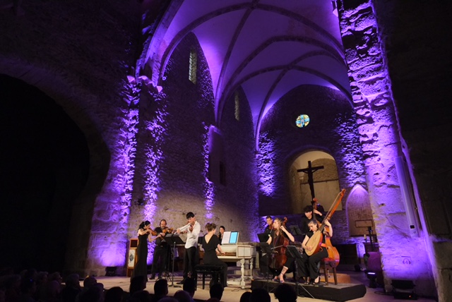 Le concert est sans entracte, qui passe d'un concerto à l'autre (et d'une ambiance colorée à une autre) via d'habiles transitions et autant de manières de préluder agréablement, mettant notamment en valeur les instruments du continuo (théorbe, violoncelle et clavecin) entendus séparément. Théotime Langlois de Swarte arrive quant à lui du fond de la nef, archet actif et force bariolages (Fantasia de Nicolas Matteis) avant de jouer un choral de Bach (Auf meinen lieben Gott), invitant progressivement tous les pupitres de l'orchestre à le rejoindre : l'échauffement est salutaire avant de démarrer tous ensemble et dans l'élan (le soliste « colla parte ») le Concerto pour violon et orchestre en la mineur, BWV 1042. La lumière est intense, le tempo vivacissimo et l'archet du soliste dans l'envol. On admire l'aisance et le naturel du geste du violoniste, la sonorité rayonnante (celle de son Steiner de 1675) et la clarté virtuose de son jeu. La ligne mélodique est merveilleusement conduite dans le mouvement lent ; la sonorité chaude et soyeuse du soliste est nourrie par un léger vibrato qui ajoute un rien de moelleux à la qualité du boyau. Le troisième mouvement est emmené dans la décontraction et l'élégance du geste du violoniste, en synergie avec un orchestre rompu à ce répertoire.