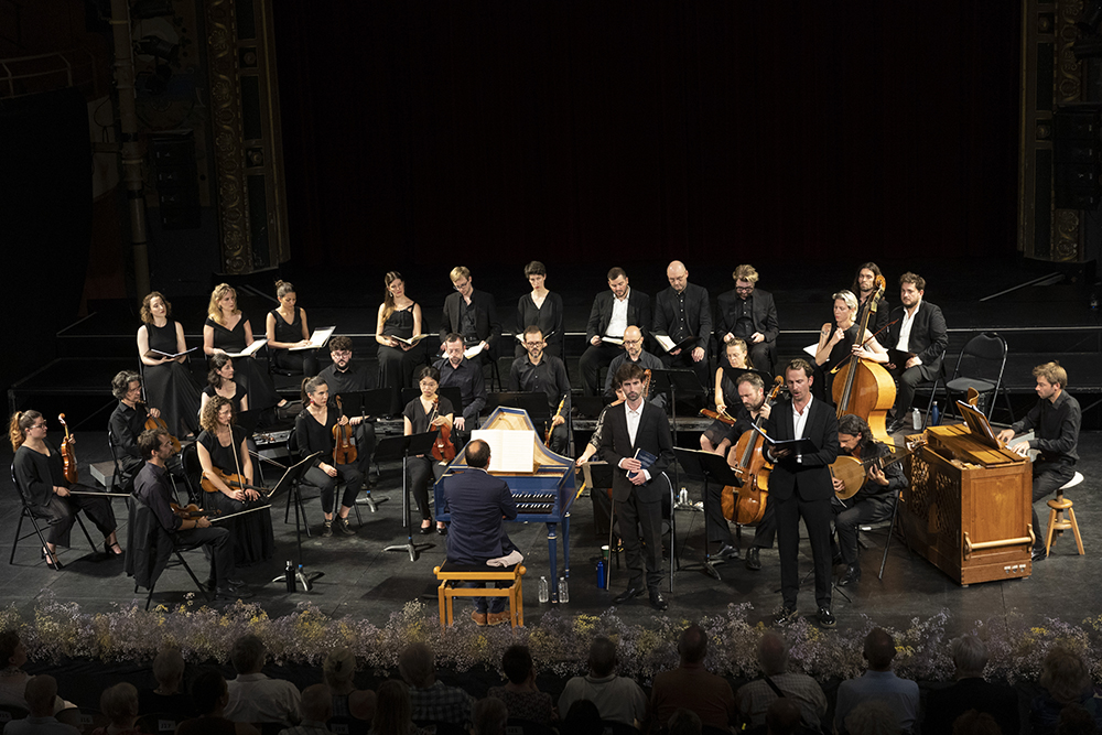 Dès l'impulsion et l'allant donné au sublime Herr introductif, Louis-Noël Bestion de Camboulas affirme sa vision dans ce concert du 12 septembre : la Passion selon Saint-Jean des Surprises sera une Passion de chambre, ce que confirmera dans la foulée l'Évangéliste de Davy Cornillot. Sobrement habité, partition (fermée) au bras, assurément à des années-lumières de plus d'un des diseurs autoritaires de la discographie, qu'importent dès lors les trois aigus et deux graves manquant encore, ce soir, dans l'intimité du Kursaal, à ce confident bouleversant. Velouté des cordes, volubilité des bois, le surlignage d'un archi-luth très présent : la phalange (dix-huit instrumentistes, chef compris) envoûte. Tout aussi remarquable, le chœur (douze chanteurs) cache quelques élus. Premier appelé, Jean-Christophe Lanièce, Jésus chaleureusement timbré. Blandine de Sansal manque ensuite de consonnes sur Von den Stricken mais réussira magnifiquement Es ist vollbracht. Eugénie Lefebvre n'a pas tout à fait la voix qui sied à l'aérien Ich folge dir. Étienne Bazola manque d'autorité en Pilate mais pas de musicalité dans ses deux airs. Les aigus de Paco Garcia, douloureusement malmenés par Ach, mein Sinn, trouvent matière à revanche dans un Erwäge quasi-ineffable. Cécile Achille tutoie quant à elle l'apesanteur de Zerfliesse, mein Herz. L'on emporte enfin le souvenir d'une soirée gorgée de musique et d'humanité. (JLC)