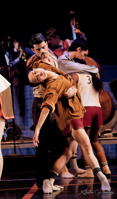 Au Gymnase Japy, lieu historique du 11e arrondissement de Paris, l'adaptation d'On achève bien les chevaux trouve un cadre idéal, réunissant 45 danseurs, comédiens et musiciens du CCN – Ballet de l'Opéra national du Rhin et de la Compagnie des Petits Champs.