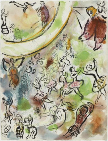 Le Centre Pompidou expose plus de 120 œuvres de Marc Chagall, rarement montrées, principalement des dessins préparatoires pour l'Oiseau de feu et des esquisses pour le plafond du Palais Garnier, toutes dons récents de Bella et Meret Meyer, petites-filles de l'artiste.