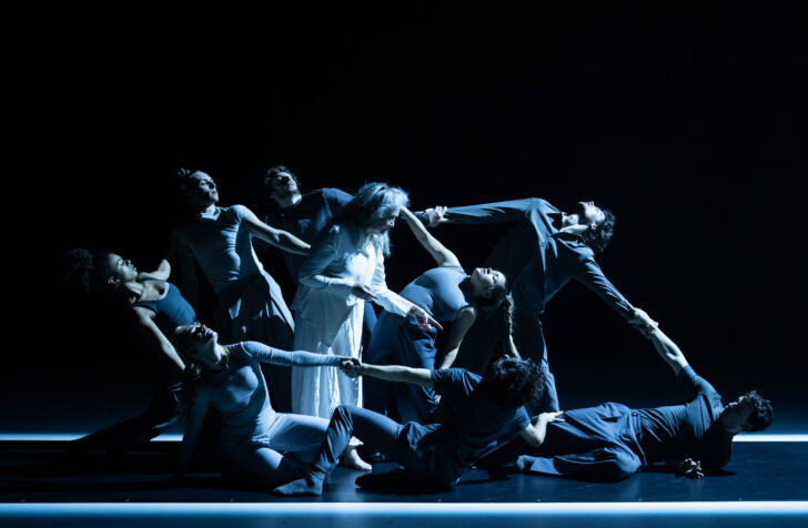 Portait fait évoluer huit danseurs sous l'œil bienveillant ou plus distant de la figure maternelle incarnée par la danseuse Amy Swanson. Découpée en plusieurs tableaux, la pièce explore les relations familiales : les alliances, les rapprochements puis la distance inévitable, mais toujours ce lien fort et l'amour qui ne peuvent s'effacer. Les gestes sont maîtrisés, fluides, avec de brusques arrêts sur image révélant la singularité de chacun, les failles, les préférences peut-être. Le travail de groupe est remarquable, l'ensemble parfait, et permet au spectateur d'imaginer une harmonie sans accroc entre les frères et sœurs interprétés par la troupe. Mais régulièrement cette belle union craque et des échappées en solo ou en duo nous font comprendre que tout n'est pas aussi simple et lisse qu'on aimerait l'imaginer.