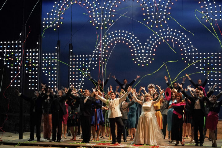 Nantes. Théâtre Graslin. 11-X-2023. Hector Berlioz (1803-1869) : Béatrice et Bénédict, opéra-comique en deux actes sur un livret du compositeur. Mise en scène, scénographie et costumes : Pierre-Emmanuel Rousseau. Lumières : Gilles Gentner. Avec : Marie-Adeline Henry, soprano (Béatrice) ; Philippe Talbot, ténor (Bénédict) ; Olivia Doray, soprano (Héro) ; Marc Scoffoni, baryton (Claudio) ; Marie Lenormand, mezzo-soprano (Ursule) ; Frédéric Caton, basse (Don Pedro) ; Lionel Lhote, basse (Somarone). Chœur d’Angers Nantes Opéra (chef de chœur : Xavier Ribes). Orchestre National des Pays de la Loire, direction : Sascha Goetzel