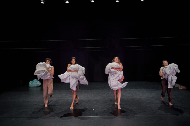 Cette année, pour la première française de son spectacle au Théâtre de la Ville-Les Abbesses, Wen Hui a choisi le dépouillement total du décor pour laisser davantage de place à ce qui se dit et se joue devant le public. Au plateau, quatre danseuses de nationalités différentes communiquent, chacune dans leur langue maternelle (chinois, italien, persan, thaï et parfois anglais, sous-titré en français). Cette pluralité d'origine, de langage, d'âge et de vécu donne à voir, par touches, des vies de femmes, les difficultés rencontrées, partout dans le monde. Toutes portent un fardeau, qu'elles déballent ou remballent au fur et à mesure du spectacle. La couette qui constitue ce gros baluchon est tantôt accrochée pour devenir écran de projection, serrée au plus près du corps ou au contraire étalée au sol. Entre manifeste féministe et pamphlet social, Wen Hui travaille à partir d'improvisation, venant de chaque danseuse, mais aussi d'archives et de témoignages recueillis. Si Report of Giving Birth évoquait essentiellement les réalités des femmes en Chine durant la politique de l'enfant unique, le nouveau spectacle de la chorégraphe chinoise sexagénaire élargie le propos et le champ d'investigation, avec l'ambition de dénoncer le grand retour du politique sur le corps des femmes, partout dans le monde. Dans ce contexte, les corps se meuvent sur scène de manière saccadées, répétitives ou frénétiques, à l'unisson avec les récits ou les émotions véhiculées. Ils peuvent aussi disparaître derrière les images projetées. Pourtant, l'espoir et la joie persistent, justement à travers ces corps trop souvent niés ou instrumentalisés mais qui ne veulent pas se taire.