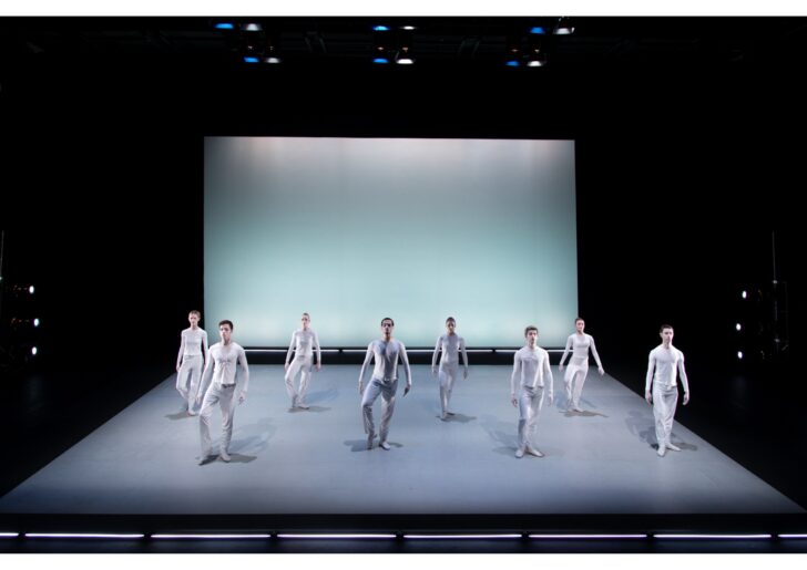 La Grande Halle de La Villette, Paris. 30-XI-23. Dans le cadre de Chaillot hors-les-murs. Lucinda Childs et Robert Wilson : Relative Calm. Concept, lumière, vidéo, scénographie et direction : Robert Wilson. Chorégraphie : Lucinda Childs. Musique : Jon Gibson, Igor Stravinsky, John Adams. Direction MP3 Dance project : Michele Pogliani . Avec : Agnese Trippa, Giovanni Marino, Irene Venuta, Sara Mignani, Nicolò Troiano, Asia Fabbri, Mariagrazia Avvenire, Mariantonietta Mango, Giulia Maria De Marzi, Xhoaki Hoxha, Cristian Cianciulli, Gerardo Pastore. Collaborateur à la scénographie : Flavio Pezzotti. Collaborateur à la lumière : Cristian Simon. Collaborateur à la vidéo : Tomek Jeziorski. Costumes : Tiziana Barbaranelli. Son : Dario Felli. Maquillage : Claudia Bastia. Directeur technique : Enrico Maso. Régisseur de scène : Petra Deidda. Assistant à la lumière : Fabio Bozzetta. Assistant à la vidéo : Michele Innocente. Assistante aux costumes : Flavia Ruggeri. Direction de projet : Marta Dellabona
