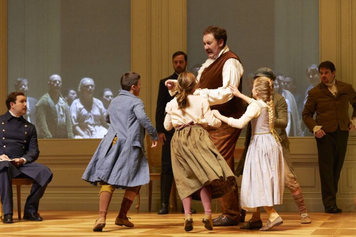 Et, de la comédie, il y en a sur la scène du Grand Théâtre de Genève. Au lever de la Maréchale, avec l'arrivée des courtisans, on assiste à des moments d'irrésistible bouffonnerie. La séquence des trois orphelines (Mayako Ito, Elise Bédenès, Vanessa Laterza), la voix pincée, criant leur demande d'aide en se prosternant s'avère l'élément libérant le plateau de la pression de la Première qu'on pouvait jusque-là ressentir.