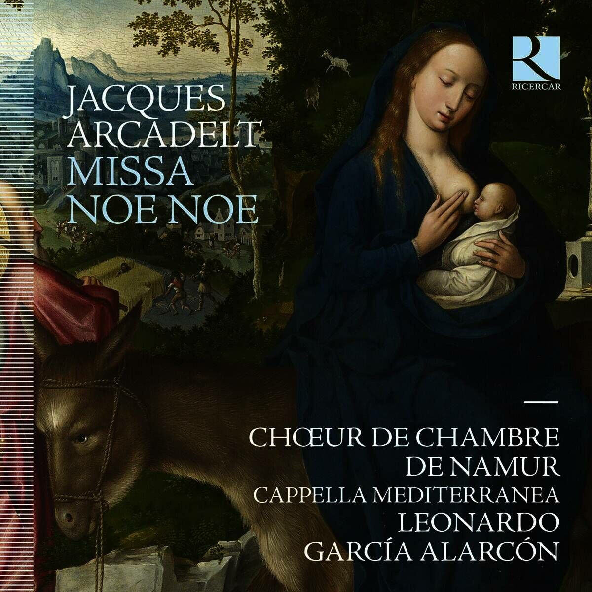 La nouvelle production vient donc, en complément de ce coffret initial, nous offrir plusieurs découvertes dont la Misse Noe Noe pour le temps de Noël et des Motets dédiés à la Vierge Marie. La Missa Noe Noe est écrite pour quatre voix mixtes et fait partie du groupe des trois Messes que nous a laissé le compositeur. Le moteur compositionnel réside en la reprise d'un matériau pré-existant pris chez d'autres compositeurs selon une pratique bien courante à l'époque. On parle de « messes parodies » où se reconnaissent des thèmes déjà empruntés souvent dans les Hymnes. Arcadelt s'inspire des anciens maitres dont Josquin Desprez et des modèles de l'Ars perfecta. Cette messe de Noël est entourée de motets liés à la Nativité. En hommage à Josquin Deprez, le programme débute par le Motet Illibata Deo Virgo nutrix chanté à la Chapelle Sixtine où œuvrait le compositeur et s'achève avec un autre imposant Motet de Josquin Benedicta es à six voix, déployé à douze voix par Jean Guyot de Châtelet l'un de ses contemporains.