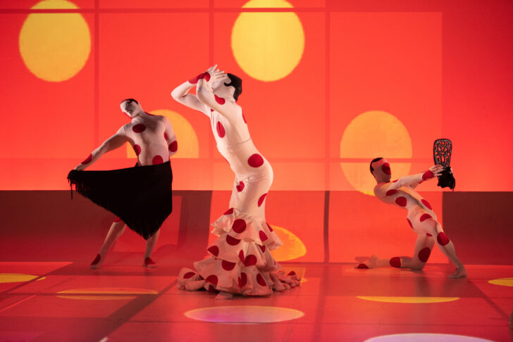 Les huit danseurs de Chicos Mambo sont des habitués des plateaux. Ils en livrent une nouvelle fois la preuve avec CAR/MEN, une version exclusivement masculine de la mythique Carmencita. Le tableau d'ouverture, très plastique, annonce la couleur avec ses robes flamenca à pois rouges surdimensionnés sur fond blanc inspirées par l'artiste japonaise Yayoi Kusama et un discret hommage à la coupe courte de Zizi Jeanmaire dans Carmen de Roland Petit. La scénographie repose sur des projections vidéo du plus bel effet, qui reprennent ces pois surdimensionnés pour un véritable ballet !