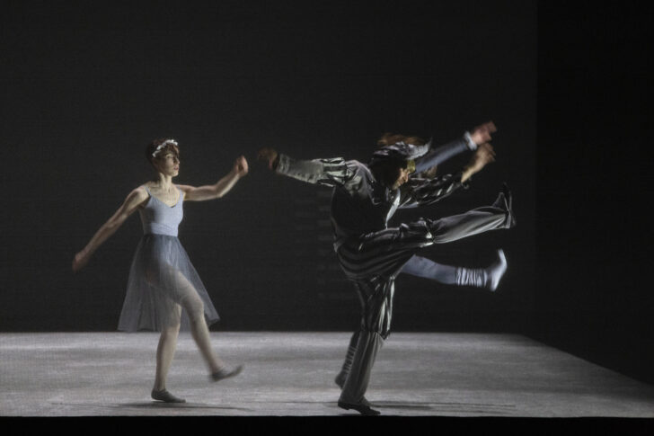 Cette histoire documentée paraît tantôt lointaine (sont successivement évoqués Nijinsky, Loïe Fuller ou l'historien de l'art Aby Warburg, qu'a longtemps étudié la chorégraphe), tantôt proche, comme lorsque Gaëlle Bourges évoque au début du spectacle ce gala de danse auquel elle participa enfant ou les cours de danse qu'elle donnait à la fac de sport ; tandis qu'elle est illustrée par de courtes séquences dansées par des interprètes que l'on ne distingue jamais vraiment. Derrière un écran de tulle, figures historiques ou personnages de papier, ils restent dans la pénombre d'une lumière parcimonieuse, dans l'éphémère d'un instant délicatement dressé, dansé ou mimé.