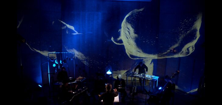 Après Diffractions, jouant sur l'interaction du son et de la lumière, Lithophonic, donné sur le plateau de la Seine Musicale, est une nouvelle collaboration de la plasticienne Justine Emard avec l'ensemble TM+, un nouveau voyage de l'écoute et du regard embarquant dans l'aventure la compositrice Lara Morciano.