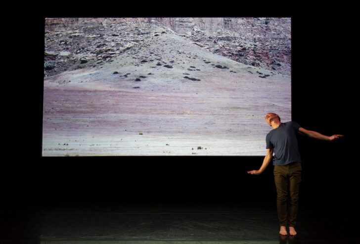 Pour rendre tangible son voyage jusqu'à l'océan Pacifique, il utilise en effet la vidéo, devenu support plasticien, mais surtout la voix et la danse. Suivant le parcours sinueux des cours d'eau, décrivant la marche rugissante de la locomotive du transsibérien, racontant haletant sa fuite devant l'ours ou ses escapades frémissantes dans la nature, ce chorégraphe voyageur s'inscrit dans les pas des écrivains voyageur Nicolas Bouvier et Sylvain Tesson ou du romancier Emmanuel Carrère. On admire la force poétique de ses accélérations textuelles, l'inventivité de sa langue qui va de pair avec celle de ses mouvements dans cette performance qui était présentée pour une soirée exceptionnelle à l'occasion du festival Faits d'hiver.