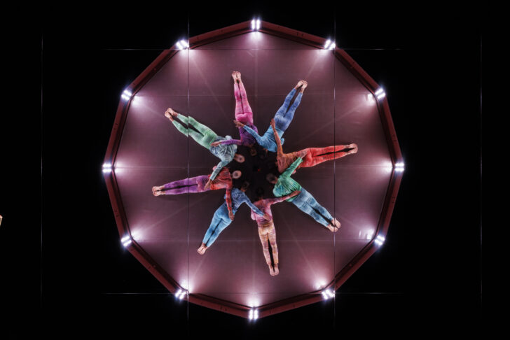 Imaginez un kaléidoscope géant dont les cristaux sont remplacés par des danseurs et des danseuses aux collants colorés. C'est dans ce dispositif scénique innovant que Jasmine Morand poursuit son exploration des illusions d'optique avec Mirkids, déclinaison pour les enfants de sa pièce Mire.