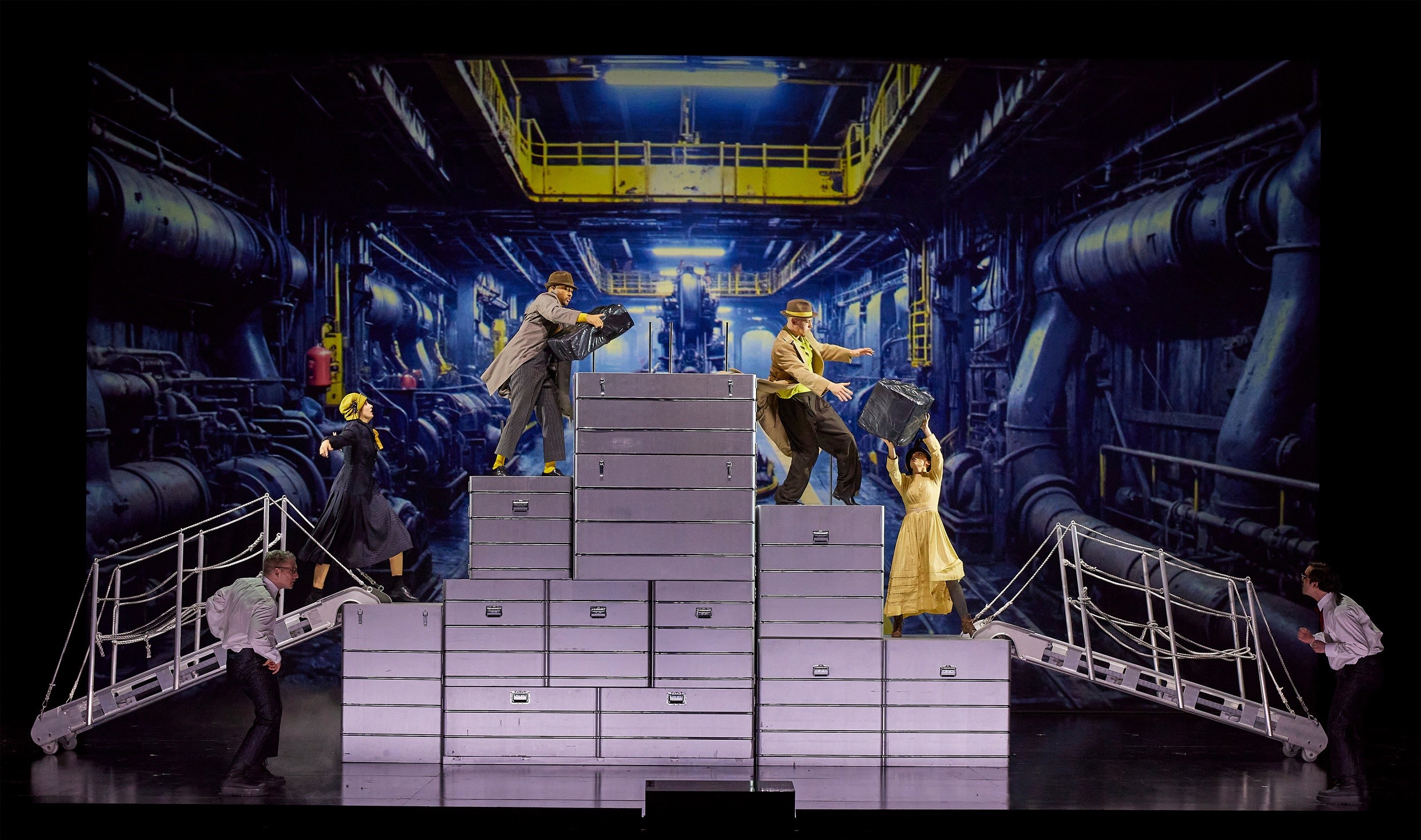 La première impression qu'on retire de cette nouvelle production zurichoise est qu'il n'y a pas de quoi avoir peur : moins radicale dans sa méfiance face à la narration que l'azione teatrale de Nono, moins explosive que Les Soldats, elle se laisse approcher sans difficulté pour peu qu'on ne s'enferme pas dans les codes de la tradition lyrique. Le laconisme du livret, souvent réduit à des phrases éparses du roman, parfois même à des mots isolés, peut être déstabilisant, mais Haubenstock-Ramati renforce ainsi de manière frappante la logique traumatique et cauchemardesque du roman de Kafka, sans en négliger l'humour. On le voit aussi dans l'écriture vocale : il utilise différentes variétés de sprechgesang, parfois grotesquement surligné, parfois plus affairé, ne recourant à un style plus classiquement lyrique que pour quelques phrases, dans le rôle du héros Karl Roßmann (Paul Curievici) et surtout dans celui de Klara (Mojca Erdmann) et de Brunelda (Allison Cook), deux des figures féminines vampirisantes comme Kafka les dépeint souvent.