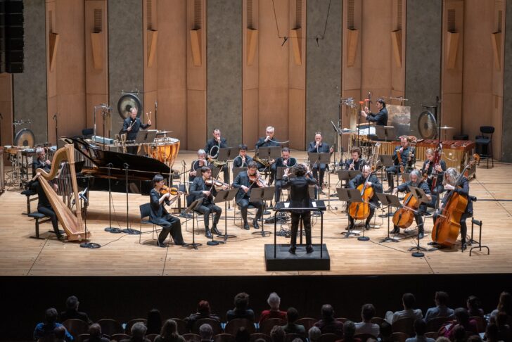 Pour la première fois sur le podium de l'Intercontemporain, la cheffe polonaise dirige l'Ensemble dans un programme particulièrement émouvant où deux pièces de voisinent deux créations mondiales de et .
