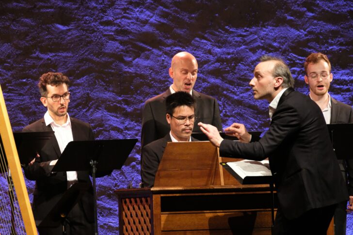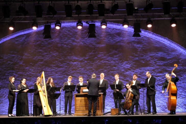 L'Église des Dominicains (près de 600 places) est comble, à 21 heures, pour le concert du soir affichant le Stabat Mater de Domenico Scarlatti (1685-1757). Si le compositeur italien et claveciniste virtuose a fait sa réputation avec ses 555 sonates (Esercizi) pour le clavecin, son corpus vocal religieux est moins répandu. L'ensemble baroque Caravansérail et son chef et claveciniste Bertrand Cuiller, pour la première fois sur la scène perpignanaise, ont gravé le Stabat mater en 2022 chez Harmonia mundi. Le chœur est distribué en demi cercle, avec, au centre du plateau, les musiciens du continuo, orgue, violoncelle et contrebasse ; on s'interroge sur la présence de la harpe à gauche du chef qui peine à se faire entendre. Les musiciens débutent par la Missa brevis quatuor vocum ou Messe de Madrid, une messe à quatre voix avec Credo, malgré son appellation de messe brève. Écrite dans le « stilo antico », sur le modèle très académique d'un Palestrina, l'œuvre, certes bien chantée, ne stimule pas toujours l'intérêt de l'écoute. Plus libre dans sa facture, le Te deum et son double chœur, très court quant à lui, offre des configurations vocales moins attendues et une écriture plus verticale et ciselée au service de la louange dont le chœur communique l'élan et la ferveur.